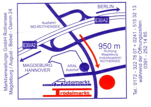 Der Private Automarkt Rothensee befindet sich gegenüber vom Autohof Magdeburg.
